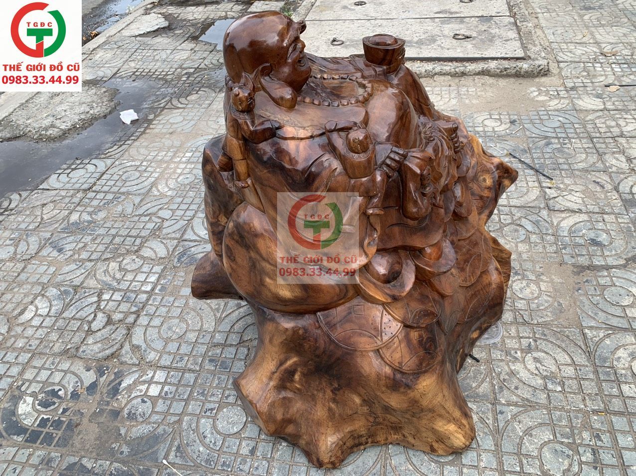 Tượng Phật Di Lặc Ngũ Phúc ngồi Hũ Tiền gỗ Chiu Liu - vật phẩm phong thủy có giá trị thẩm mỹ cao cho gia chủ..