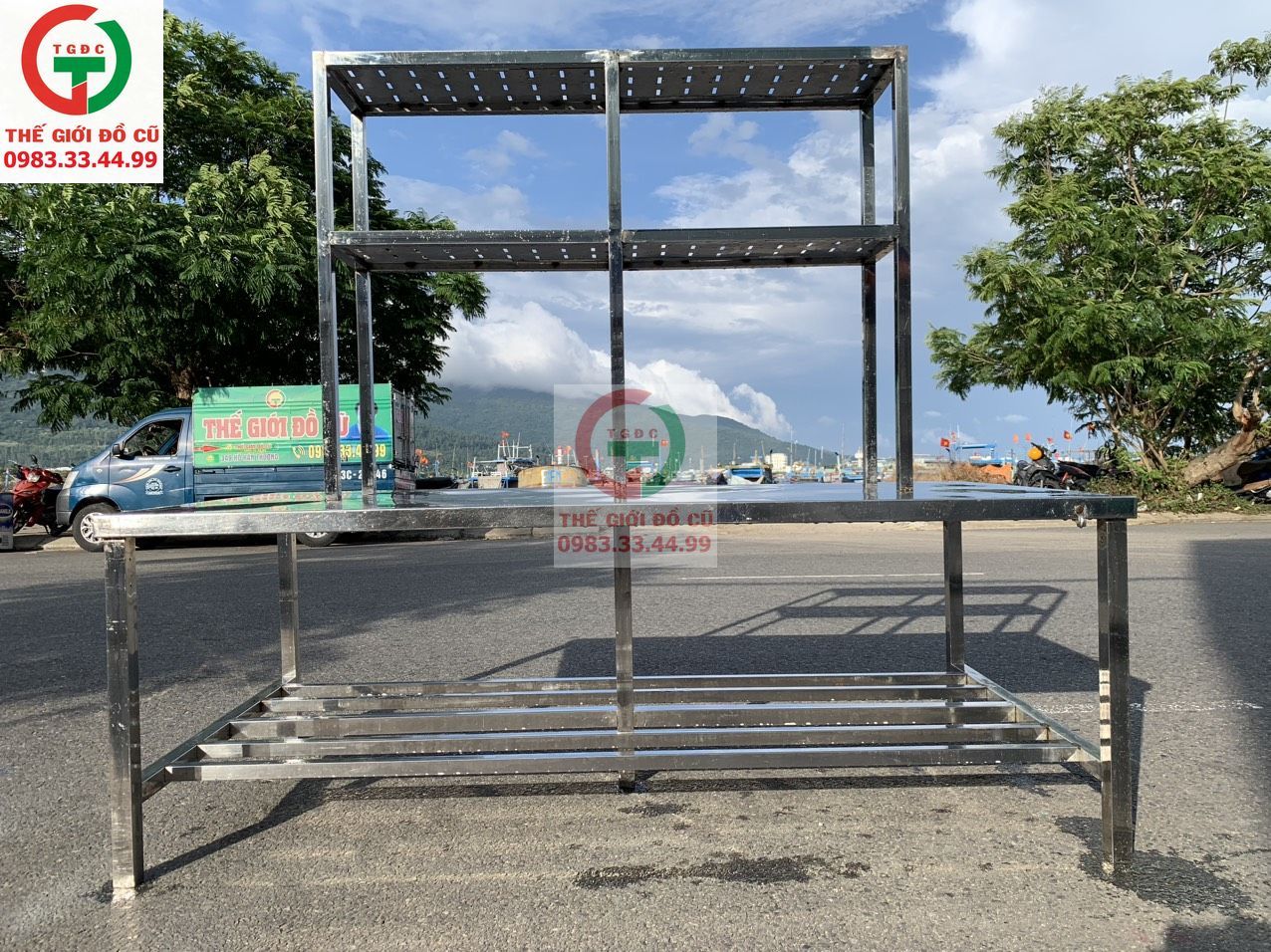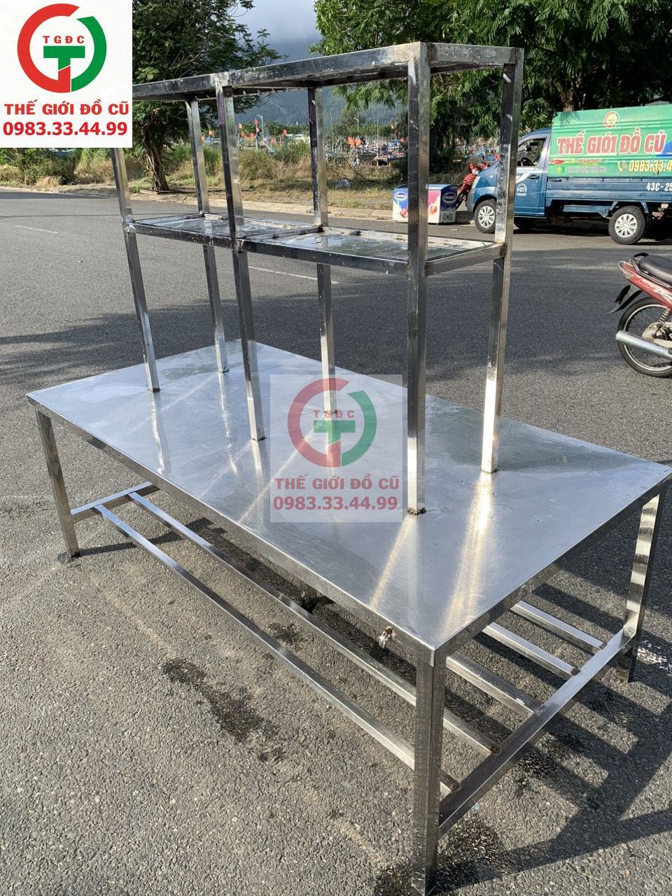 cần bán Bàn chế biến inox liền kệ mới keng sáng bóng.