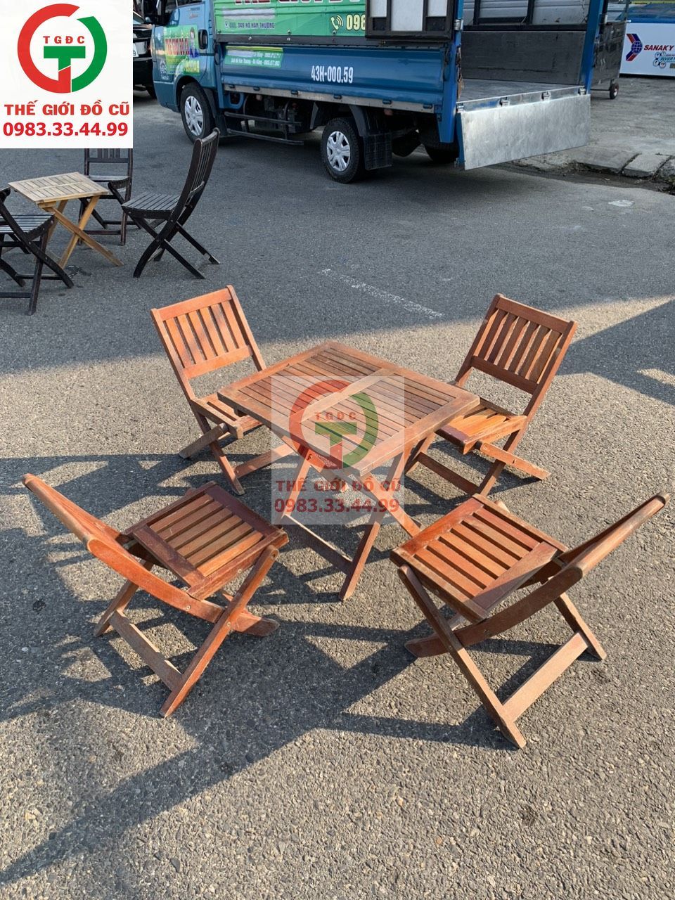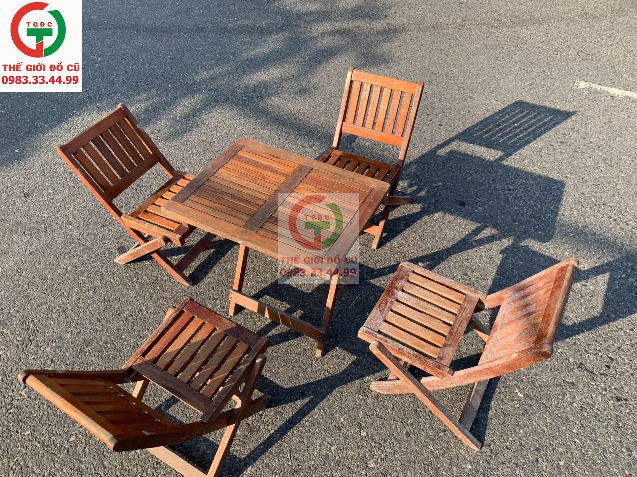 cần bán bàn và ghế cà phê cóc gỗ xếp gọn còn chắc cứng dùng bền cho quán xá tận dụng.