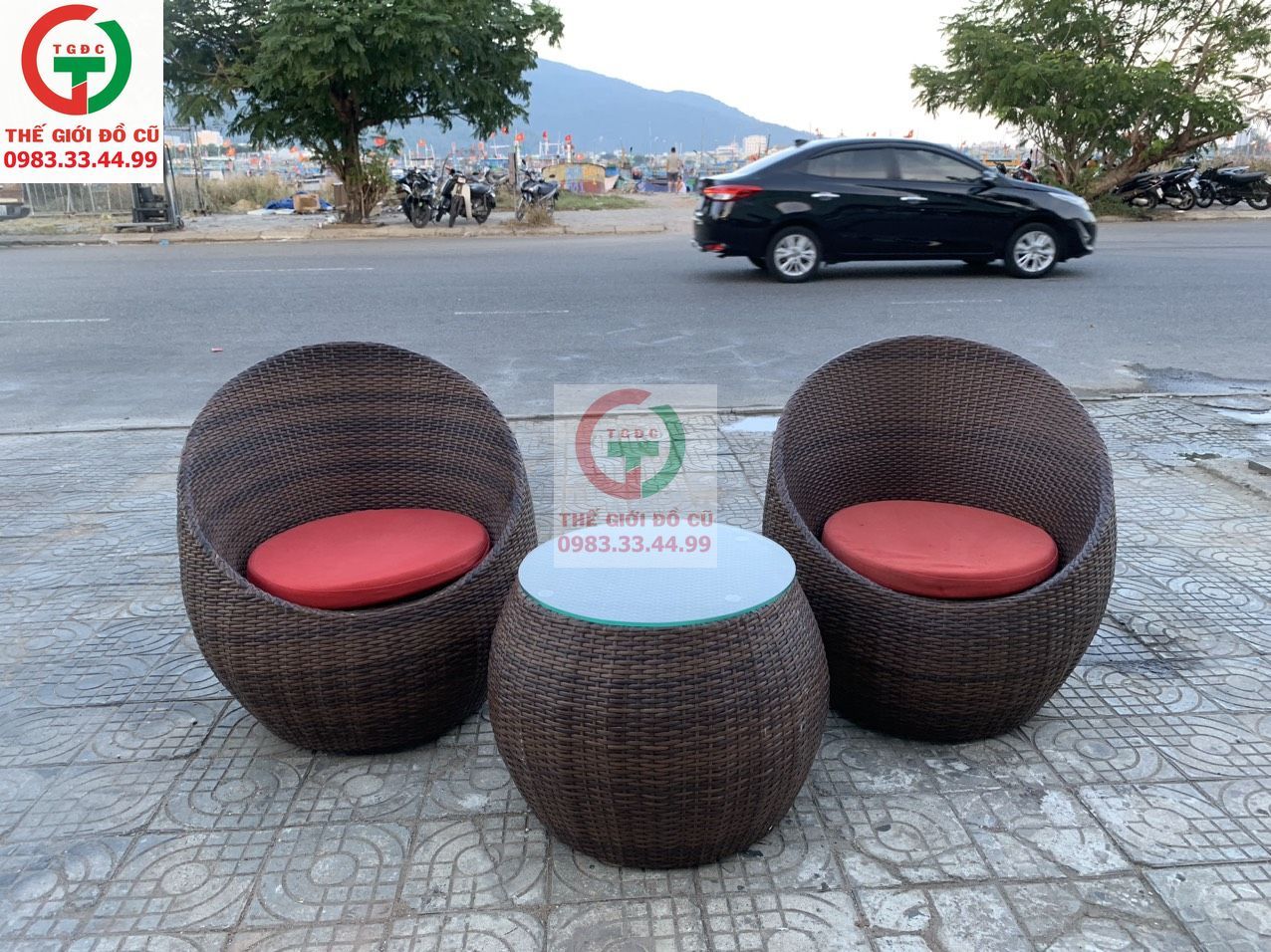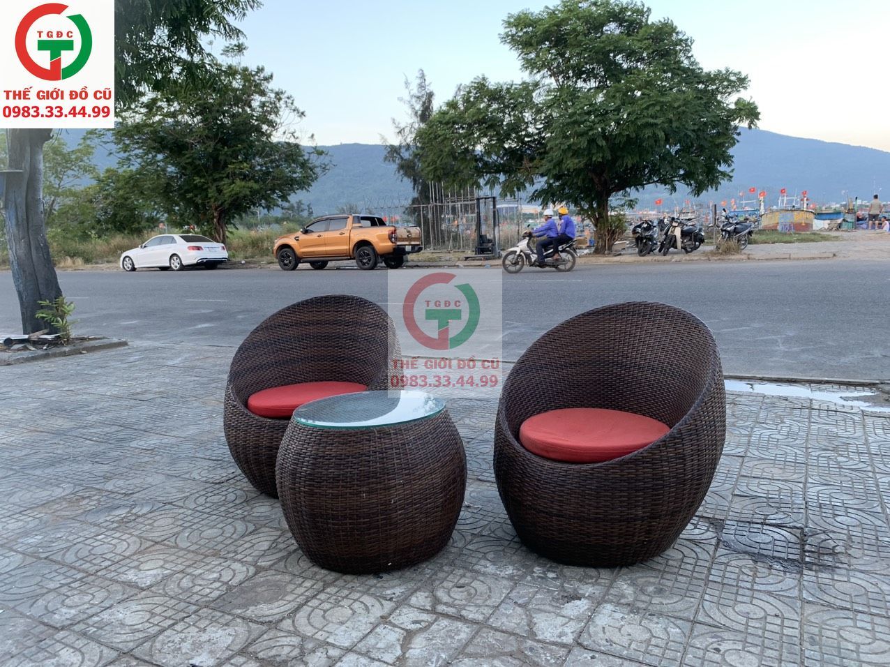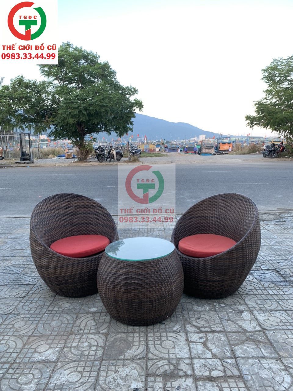 cần bán bàn và ghế cà phê mây thúng đẹp xinh sang, thích hợp với các không gian hồ bơi, sân vườn, cà phê ven sông, resort..