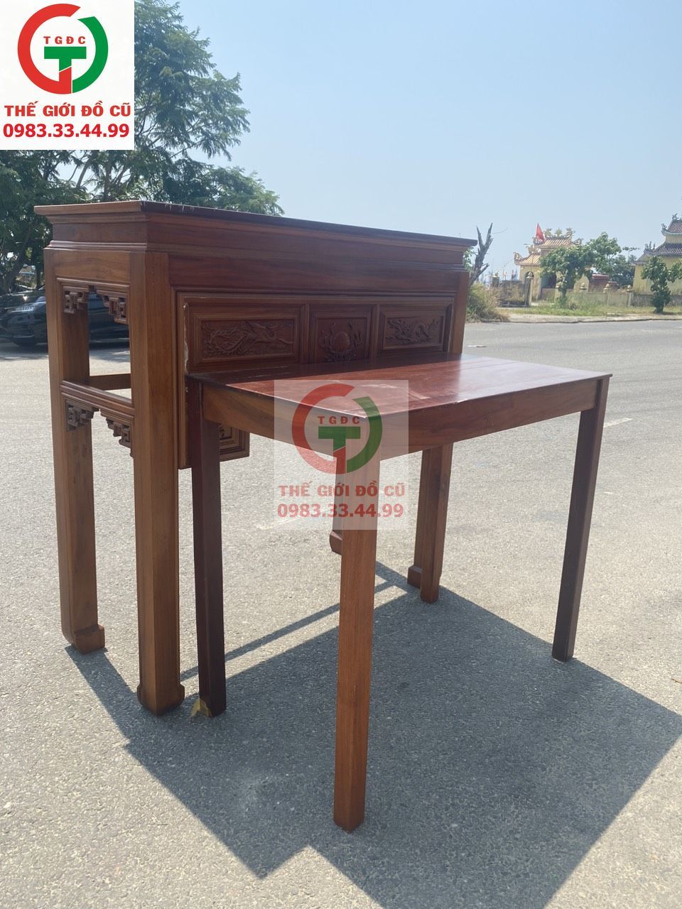 Bàn Thờ Gỗ 2 bậc còn mới cứng đẹp chắc, chạm khắc đẹp cho gia đình.
