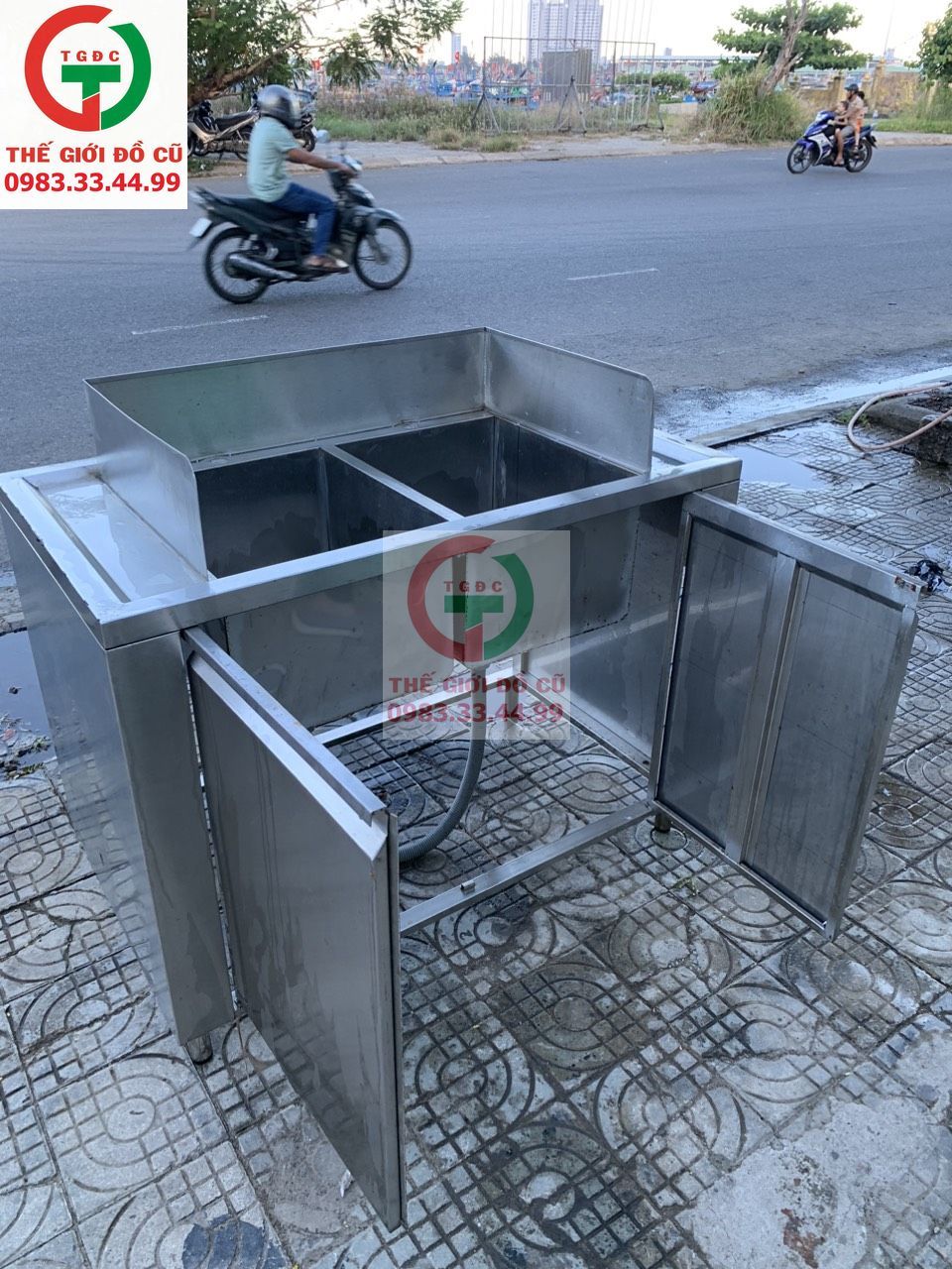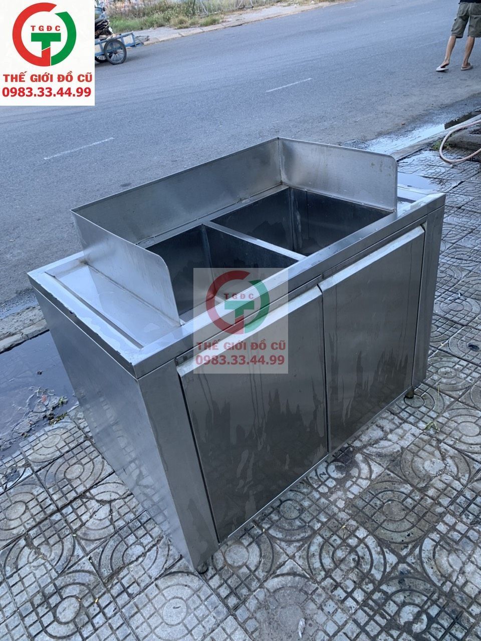 CHẬU RỬA INOX 2 HỌNG VUÔNG INOX 304 CỬA DƯỚI