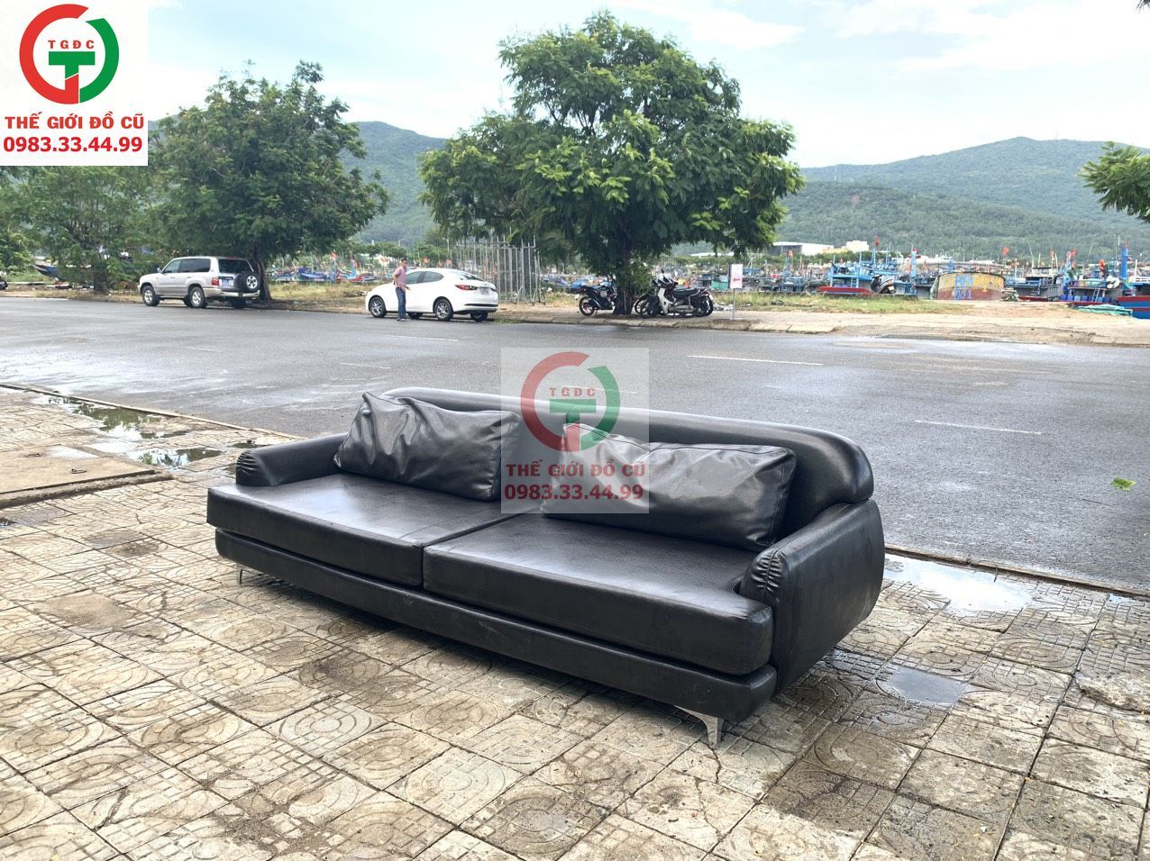 Cần bán Sofa Băng da màu đen đẹp sang còn mới, đệm mút dày 2 lớp bọc da mềm mát ngồi êm, gối tựa đi kèm đầy đủ.