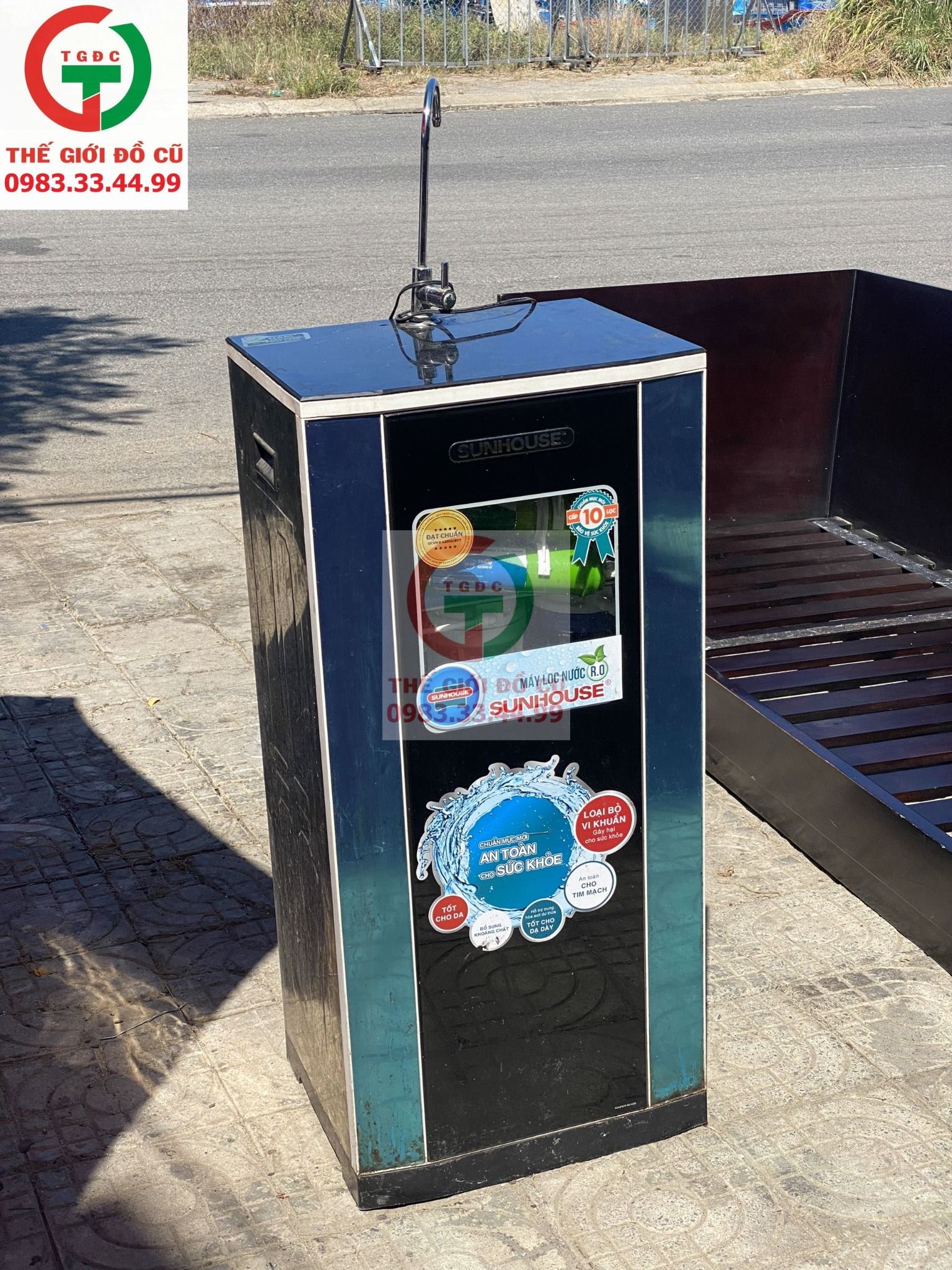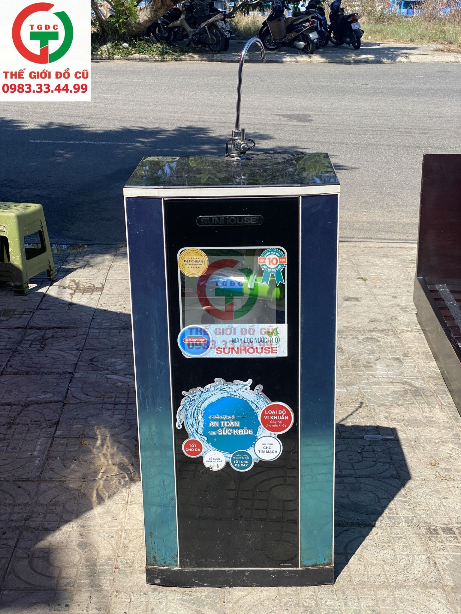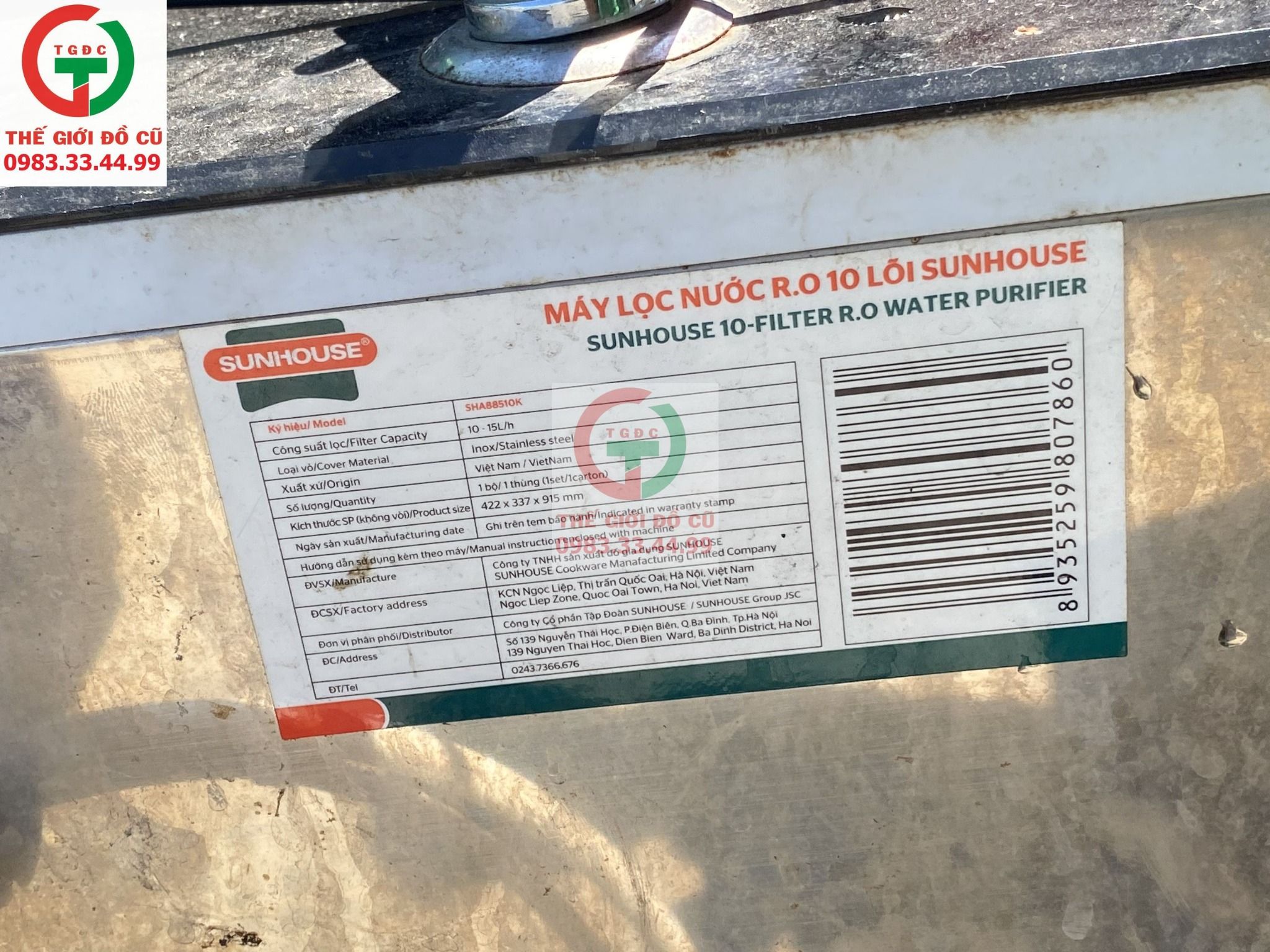 Máy lọc nước RO SUNHOUSE 1 vòi 10 lõi còn sử dụng oke. Hàng chính hãng, vỏ inox sáng sạch vệ sinh.