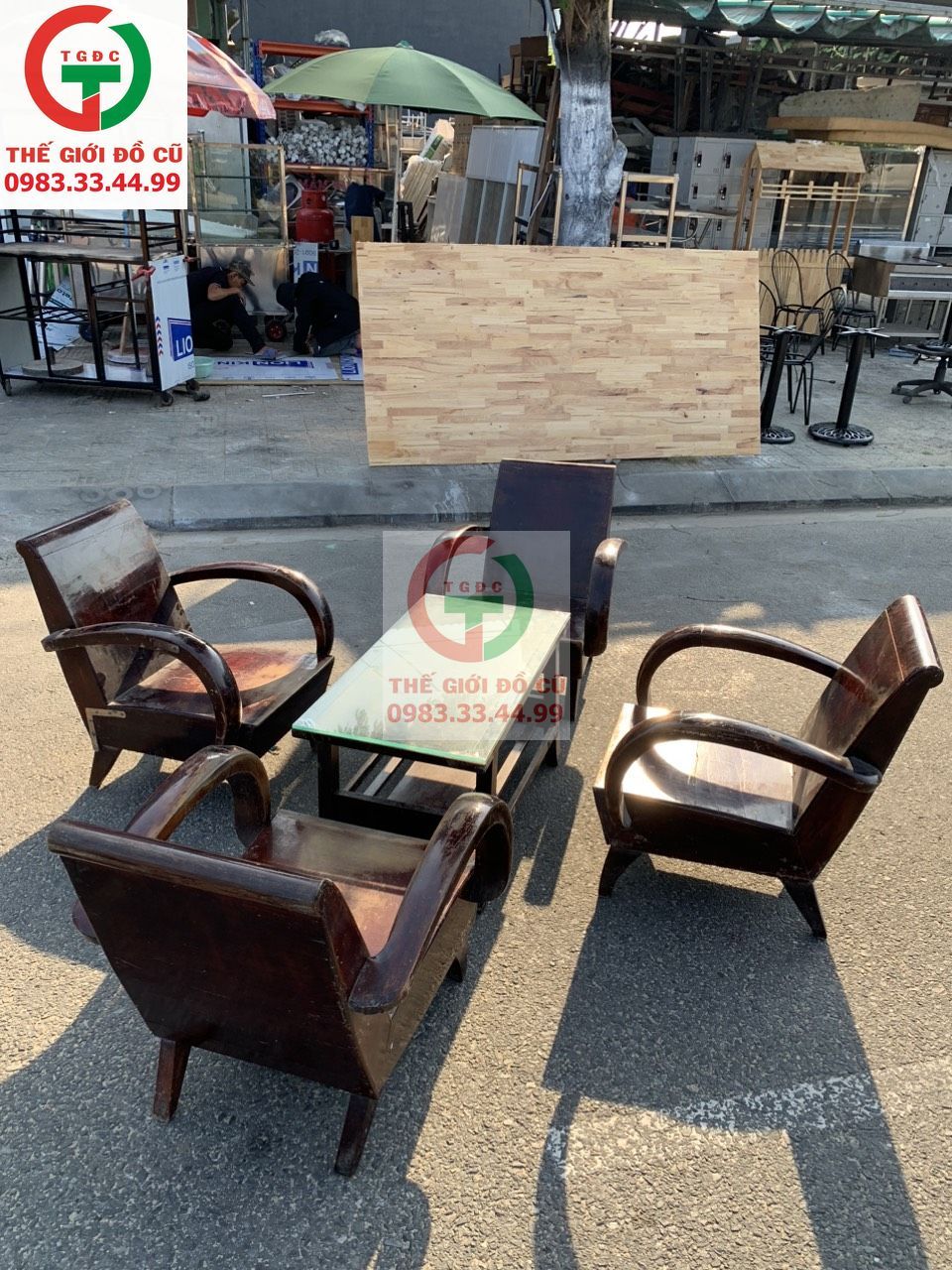 -cần bán Bộ Salon thùng gỗ gõ nguyên mộc cho khách decor quán xá cà phê vintage. hay spa PU mới ngồi uống trà thư giãn tại nhà.