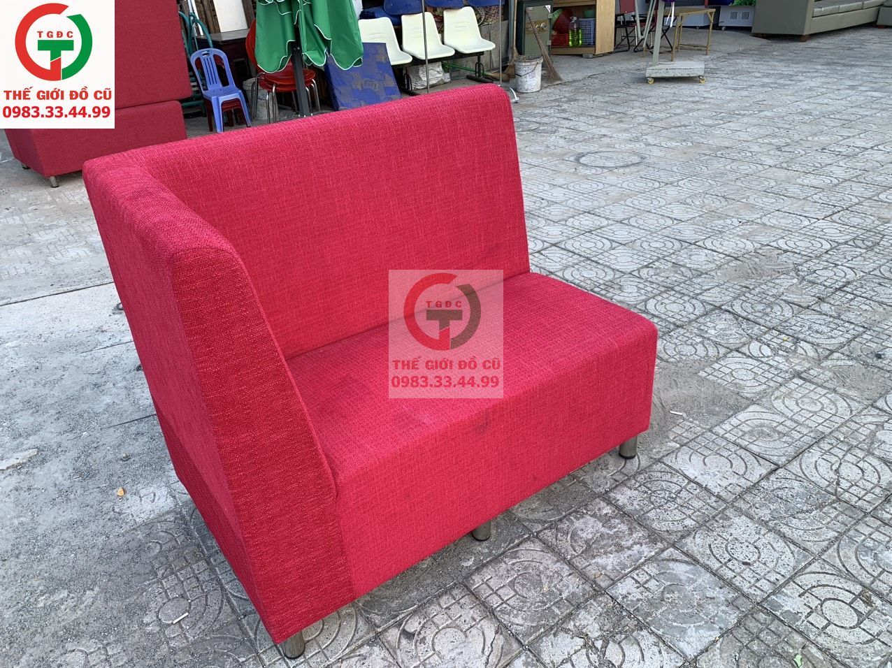 -Băng ghế còn mới, màu đỏ sạch sẽ.