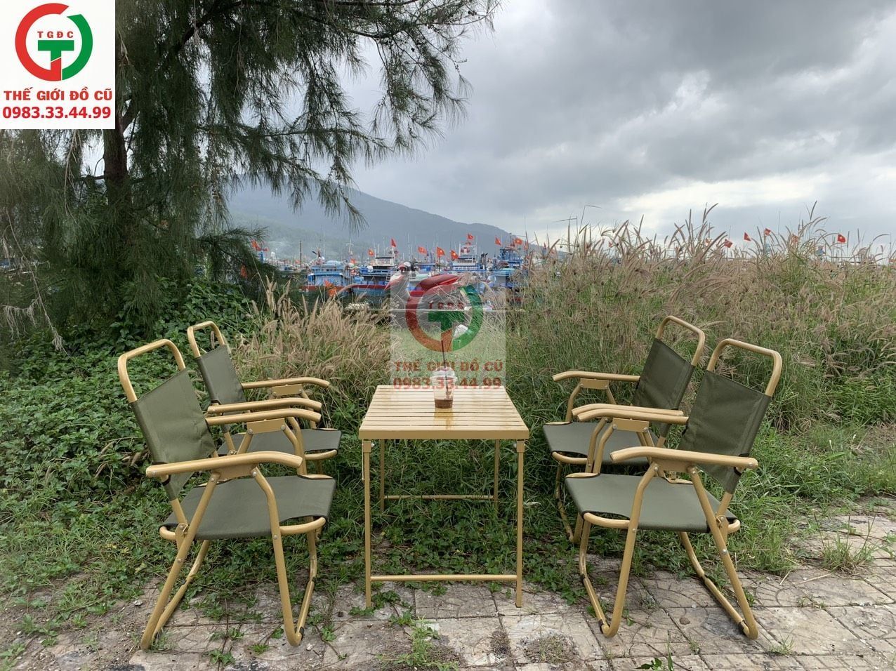 bàn và ghế cà phê xếp lưới sắt về mấy chuyến xe tải to để phục vụ mấy Chế mở quán kinh doanh.