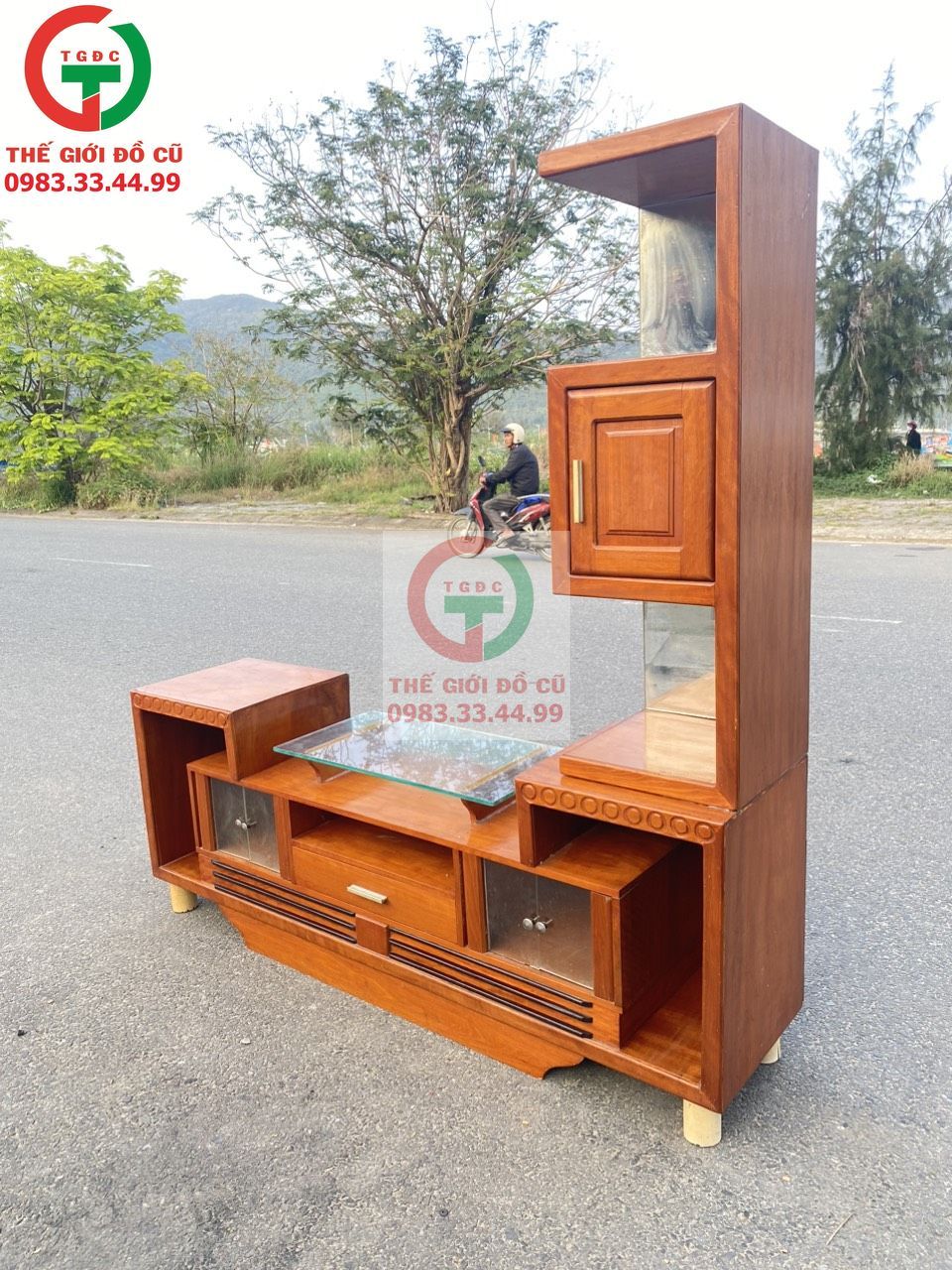 Thanh lí Kệ tivi gỗ còn mới đẹp chắc chắn. Có kệ bên để đồ dùng, đồ trang trí.