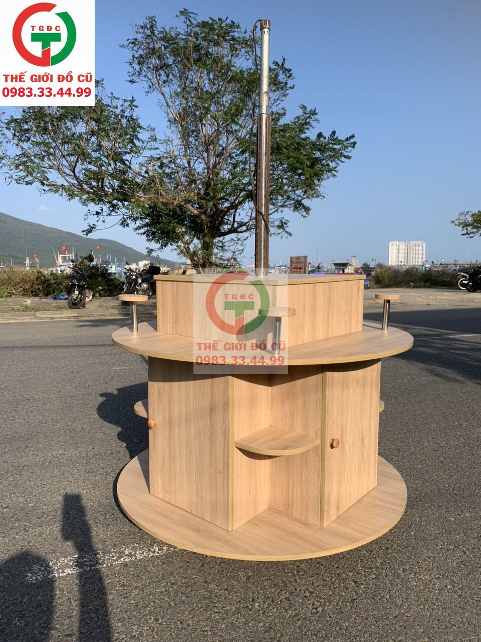 - Cần bán Quầy Kệ trưng bày hình trụ có bánh xe di chuyển dễ dàng.