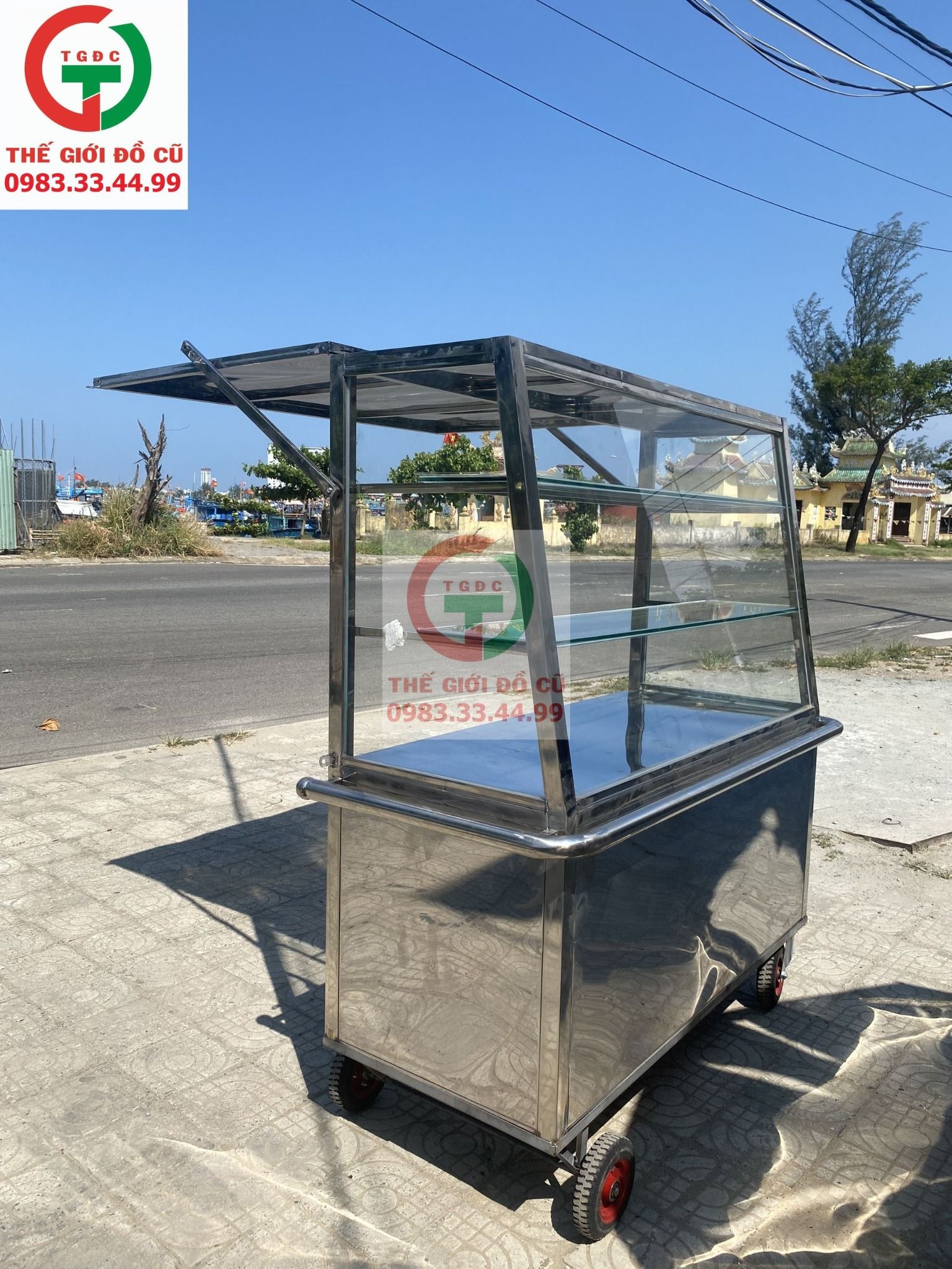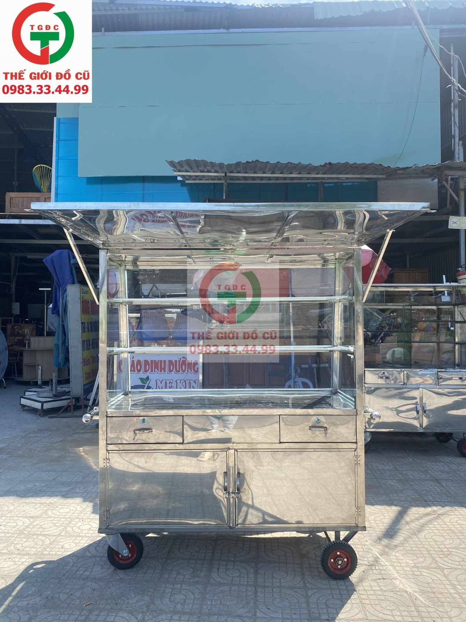 Xưởng nhà tiếp tục cập nhật thêm mẫu Tủ Bán Hàng inox có mái che tiện lợi cho khách bán buôn mùa nắng mưa..