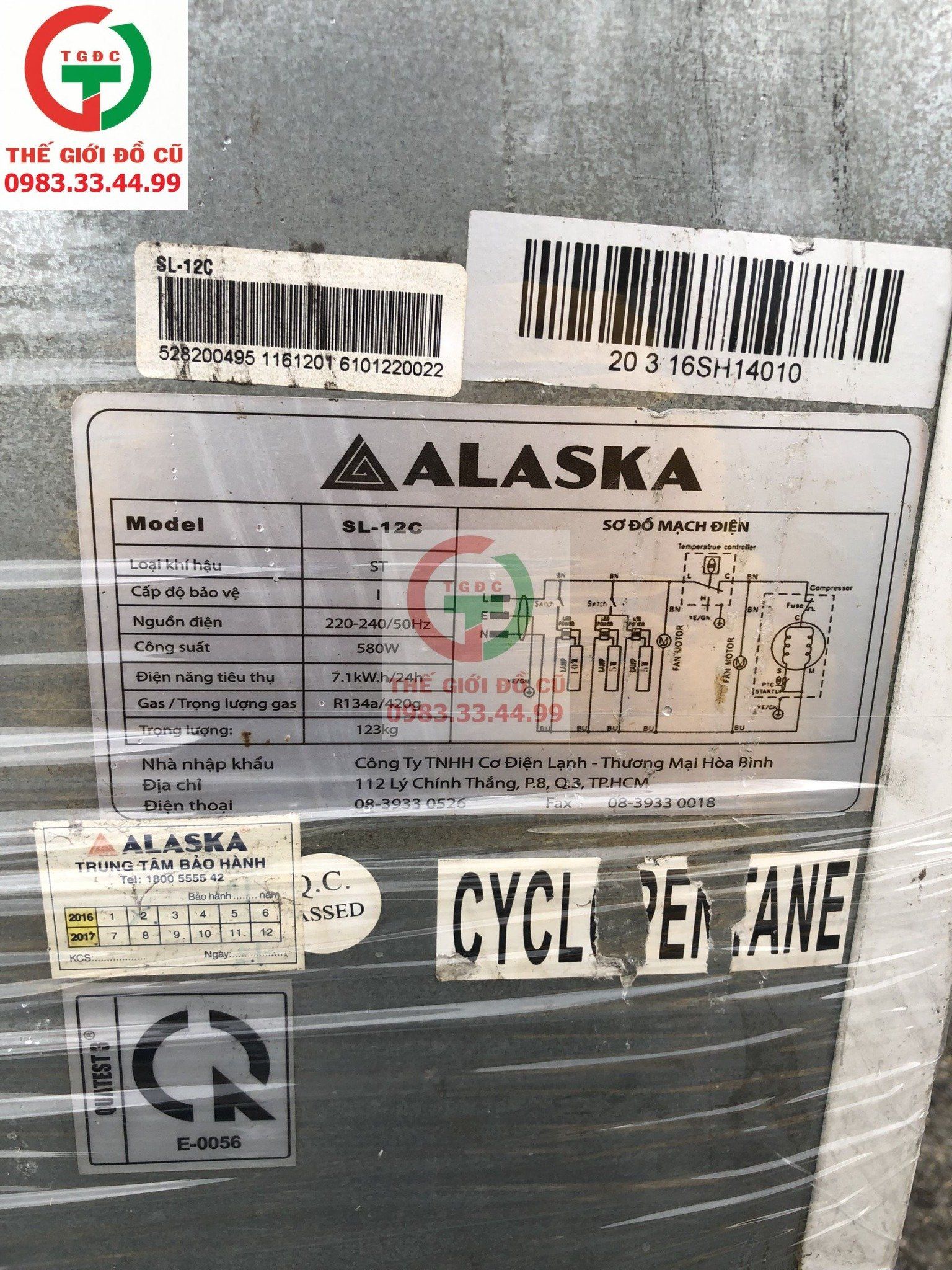 TỦ MÁT ALASKA 2 CÁNH SL-12C, mới 90%.