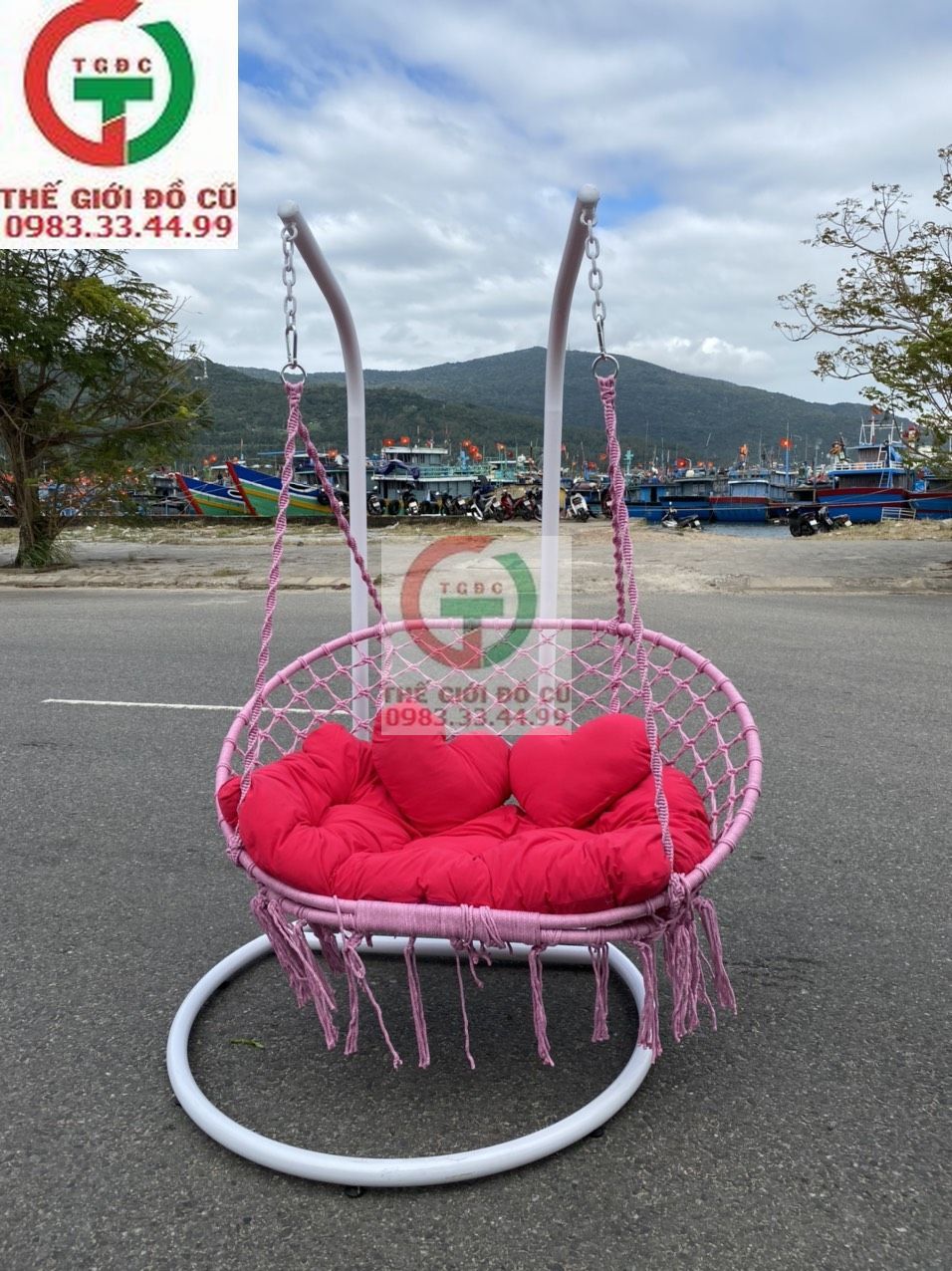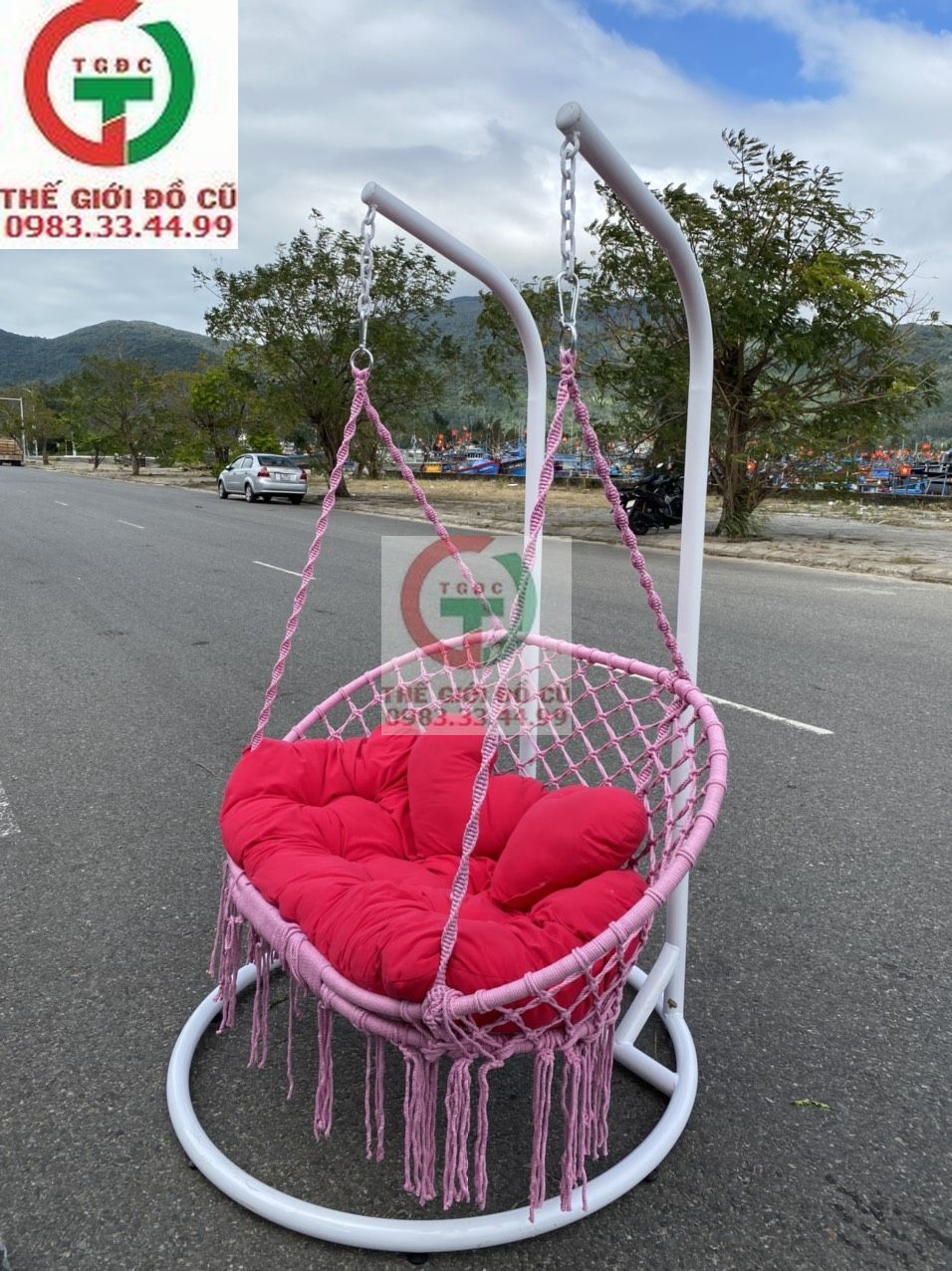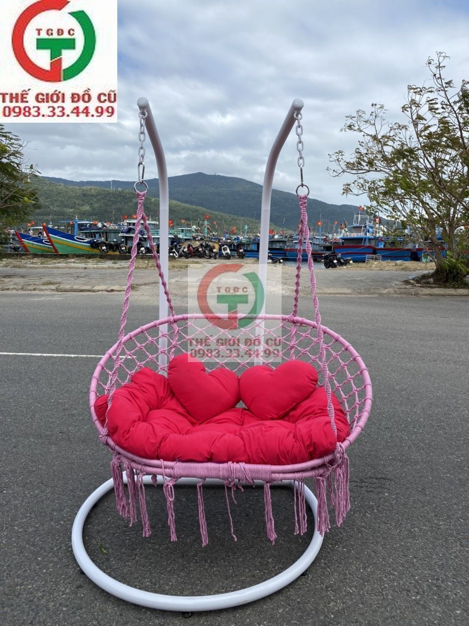 - Bộ sản phẩm bao gồm: Xích đu + Cần sắt treo + Bộ gối nệm.